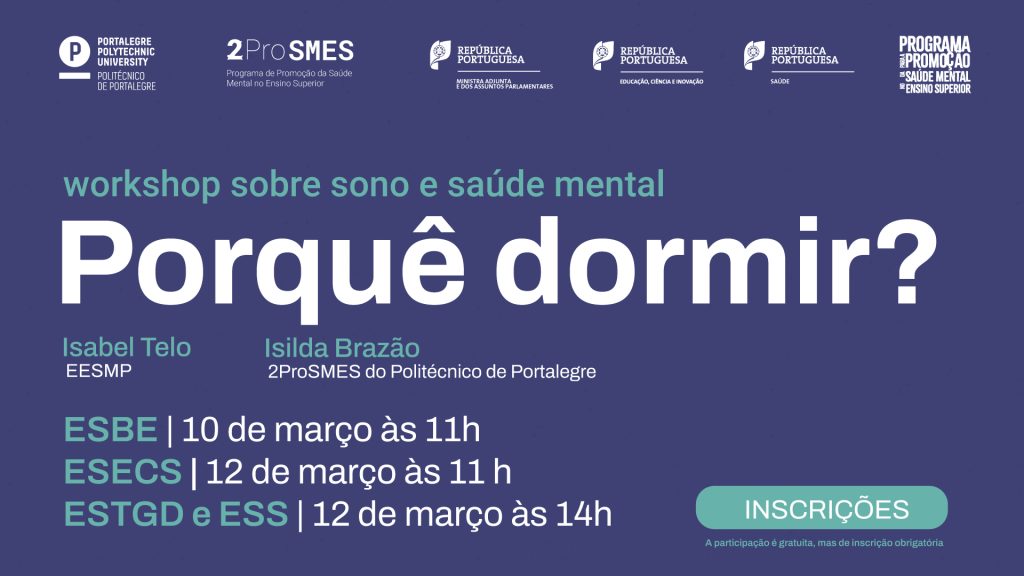 O Programa 2ProSMES – Programa de Promoção da saúde Mental no Ensino Superior do Politécnico de Portalegre – vai promover o Workshop “Porquê Dormir?”