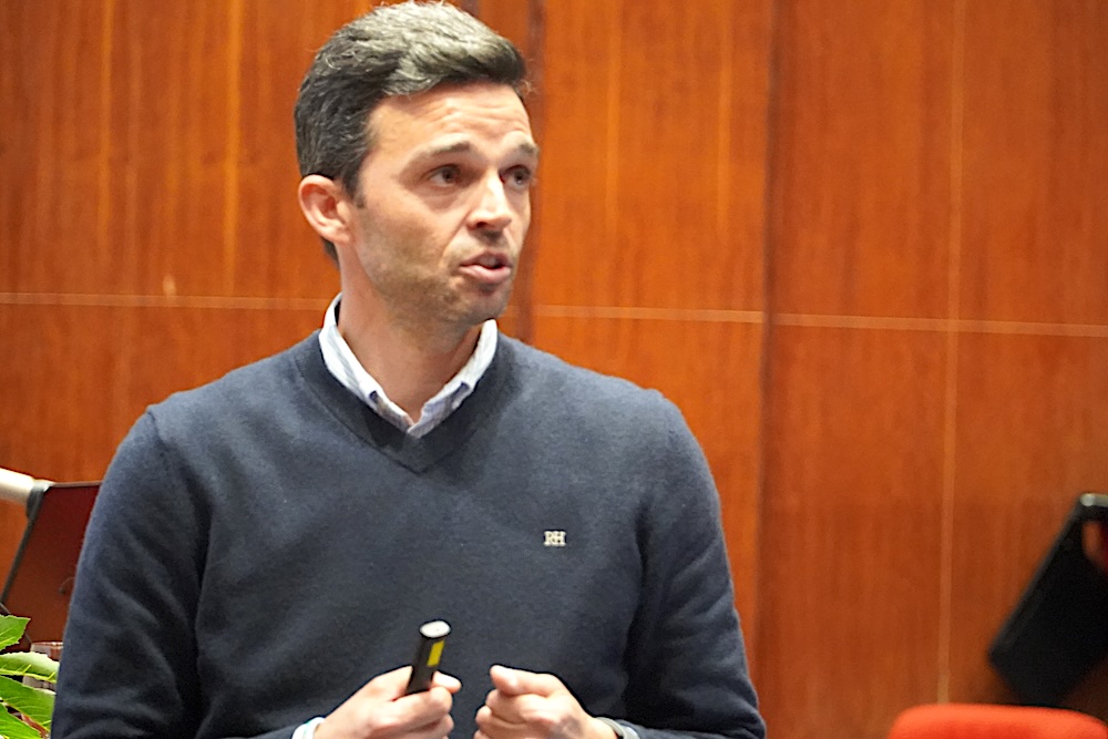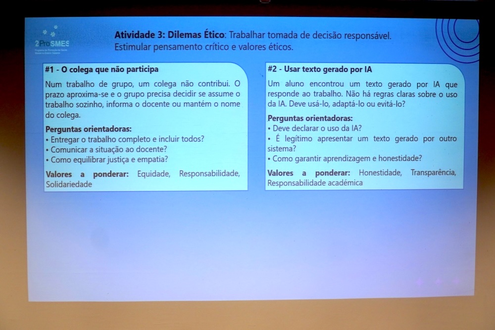 Durante a intervenção, o docente apresentou o modelo CASEL aplicado ao contexto do ensino superior, destacando a importância do desenvolvimento de competências socioemocionais, como a autoconsciência, a autorregulação, a empatia e as competências relacionais.