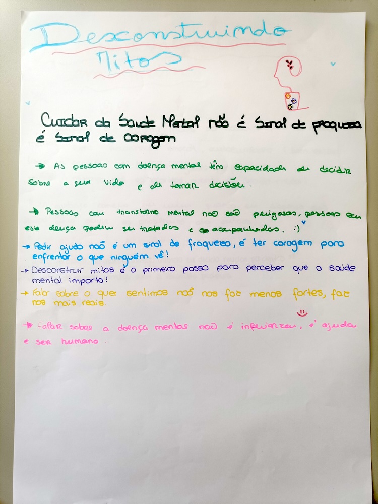 Esta iniciativa teve como principais objetivos a criação de um espaço de reflexão, diálogo e partilha entre os Estudantes, incentivando a uma análise crítica sobre o estigma associado à saúde mental e a promoção da consciencialização para a importância de uma abordagem mais empática, informada e aberta sobre a temática.