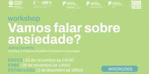 O Programa 2ProSMES – Programa de Promoção da saúde Mental no Ensino Superior do Politécnico de Portalegre – vai promover o Workshop “Workshop “Vamos falar sobre ansiedade?”” ESECS – 20 …